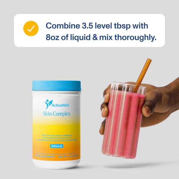 ActivaWell Skin Complex is a science-backed skin supplement designed to nourish your skin from within. Whether you're targeting breakouts, early signs of aging, or dullness, this daily formula helps restore clarity, firmness, and glow—so you can feel confident in your skin every day.