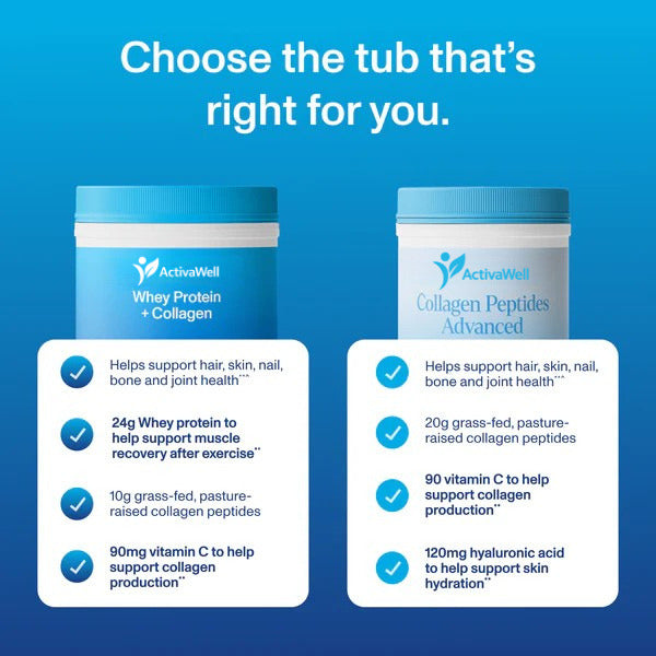 WE HAVE THE WHEY: Our whey protein + collagen mix can help your body keep on keeping on. Whey protein powder supports lean muscle and recovery after exercise + collagen peptides to support joint health. With vitamin C to support collagen production.